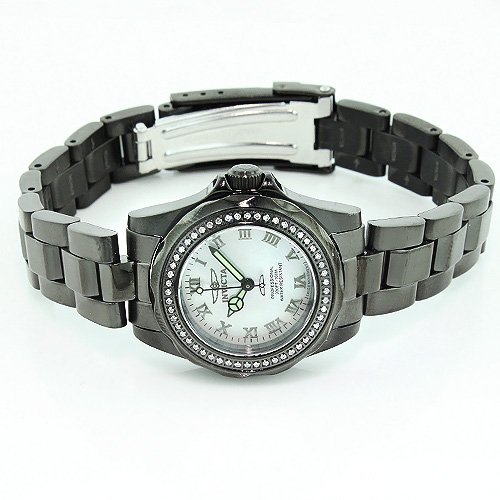This Ladies Diamond Invicta Watch features 0.52 carats of genuine diamonds on the bezel. This exquisite Invicta diamond watch showcases a white mother of pearl dial, a professional Swiss quartz movement and a black tone stainless steel band. This women's Invicta diamond watch is water resistant up to 100 meters (330 ft). discount Ladies Diamond Invicta Watch 0.52ct.